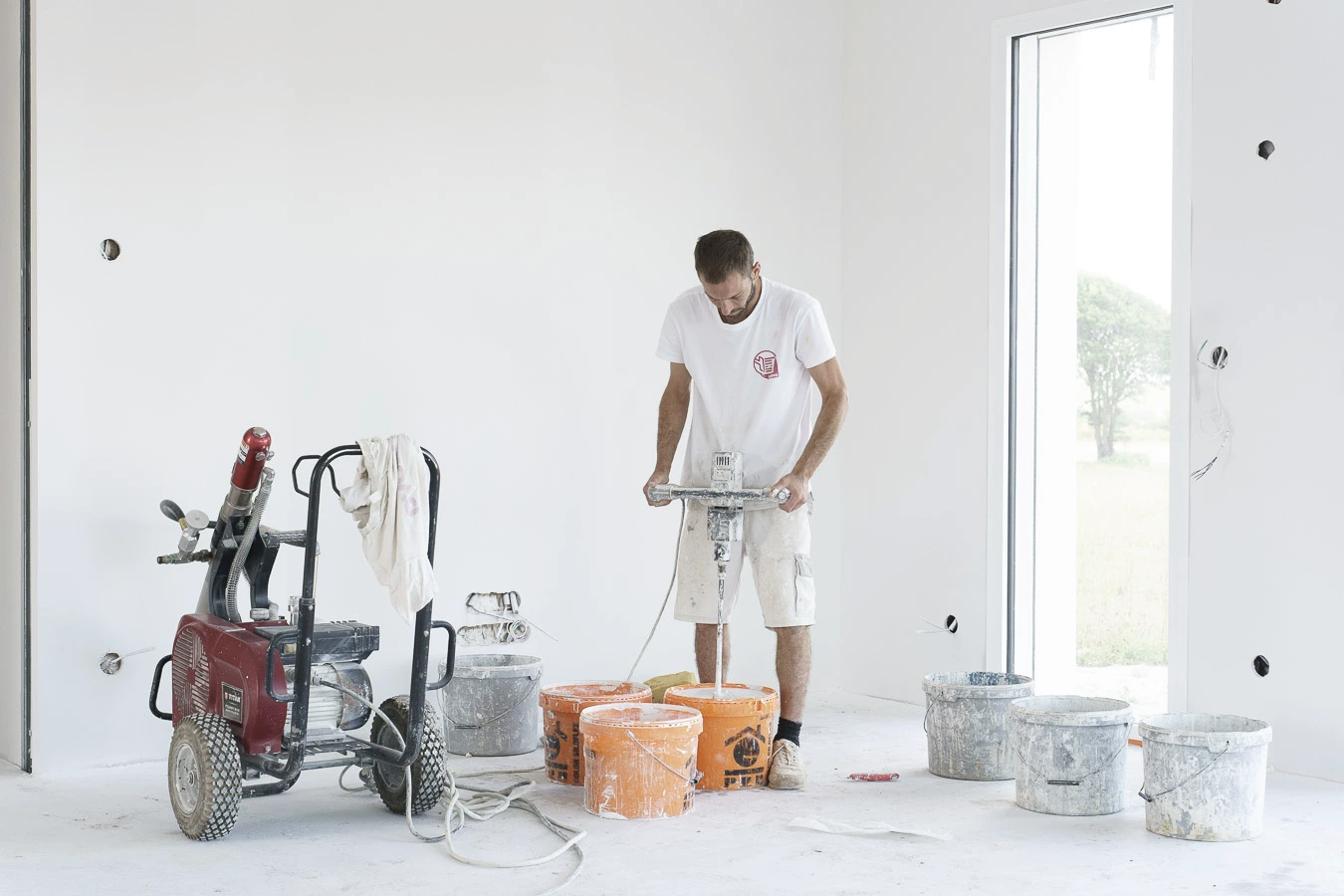 Pour vos projets de maison neuve, nous réalisons l’ensemble des finitions intérieures : plafonds, murs et sols en peinture de sol.